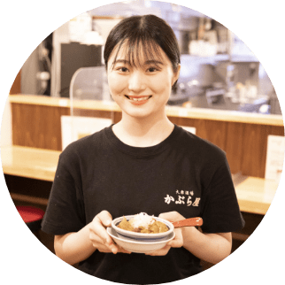 かぶら屋はレトロな大衆居酒屋。小さな店内は、いつも活気があふれています。お客様や店長、アルバイト仲間から、自分も元気をもらえるお店です!
